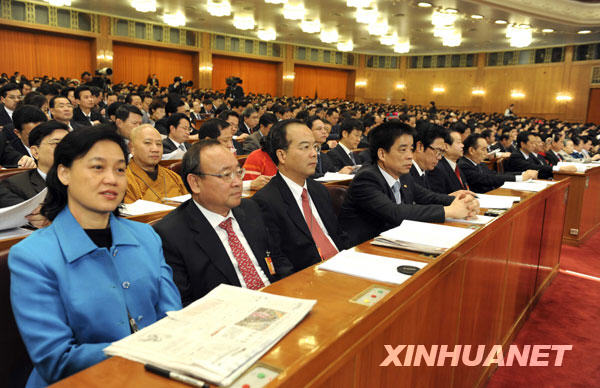 3月11日,十一屆全國(guó)人大三次會(huì)議在北京人民大會(huì)堂舉行第四次全體會(huì)議。這是代表在認(rèn)真聽(tīng)會(huì)。新華社記者陳樹根攝
