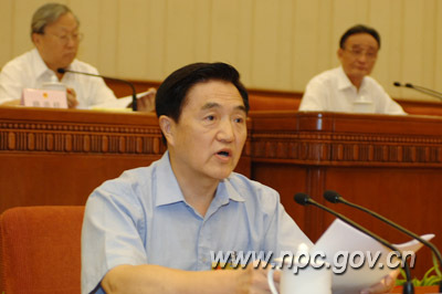 8月25日上午,十一屆全國(guó)人大常委會(huì)第四次會(huì)議舉行,法律委員會(huì)副主任委員李重庵作關(guān)于循環(huán)經(jīng)濟(jì)法草案審議結(jié)果的報(bào)告。中國(guó)人大網(wǎng) 王新慶攝