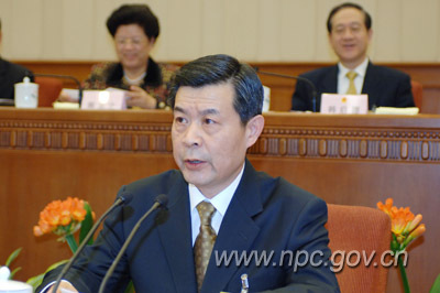 2月25日下午,十一屆全國人大常委會第七次會議舉行第一次全體會議,全國人大法律委員會副主任委員李適時作關(guān)于刑法修正案(七)草案審議結(jié)果的報告。中國人大網(wǎng) 王新慶攝