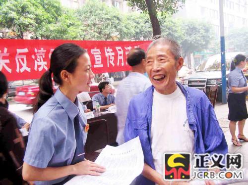 檢察官向過往群眾解釋反瀆職侵權(quán)工作的相關(guān)知識