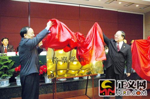 2007年12月,高檢院常務(wù)副檢察長張耕(右)為湖北省法學(xué)會檢察學(xué)研究會揭牌