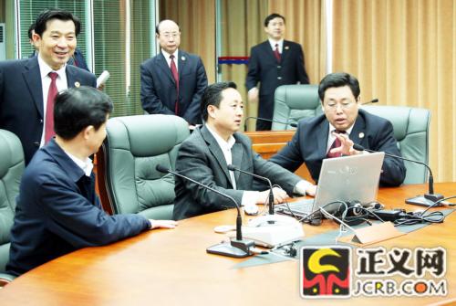 2008年3月,湖北省常委、省紀(jì)委書記黃先耀(中)視察