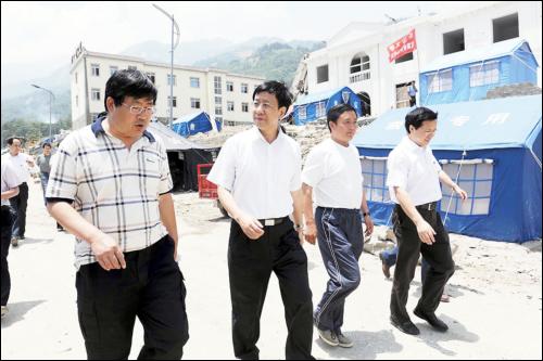 2008年6月4日,曹建明檢察長(zhǎng)在四川省汶川縣漩口鎮(zhèn)看望慰問(wèn)汶川縣檢察院干警。