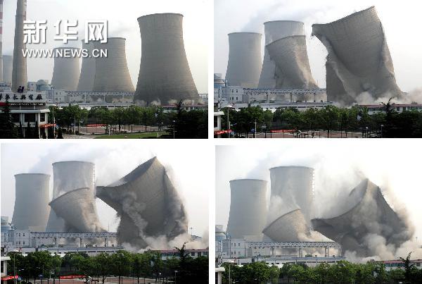 浙江電廠爆破90米巨型冷卻塔這是9月16日拍攝的爆破冷卻塔過(guò)程(拼版照片)。舊機(jī)組關(guān)停后,每年可節(jié)約標(biāo)準(zhǔn)煤50多萬(wàn)噸,減少二氧化硫排放1000多噸,減少粉塵排放300噸左右。 新華社記者徐昱攝