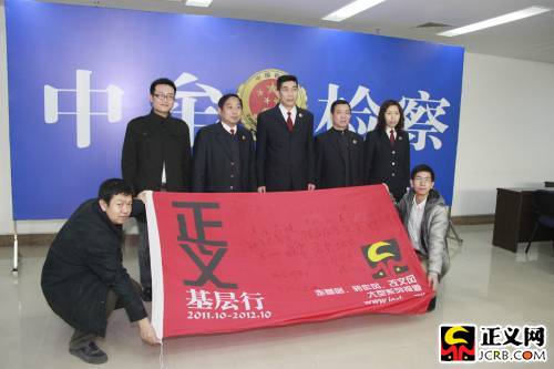 中牟縣人民檢察院檢察長張捍衛(wèi)攜院黨組成員迎接“正義網(wǎng)基層行”采訪團。姚宇 攝