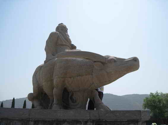下了關(guān)樓,來到花崗巖砌成的“老子騎青!钡裣袂,很多人都會產(chǎn)生這樣的疑問:老子離關(guān)西去之后,去了哪里?這個問題一問千年,我也同樣好奇。據(jù)說圣人繼續(xù)西行至秦國歸隱山林,也有說他西行至昆侖山修道。但我寧愿相信圣人出關(guān)后,得道上天做了太上老君,他下臨萬民,造福靈寶百姓;他仙氣一呵,庇蔭寺河山的蘋果和后地的大棗;他道袖一揮,成就小秦嶺的金光燦燦。