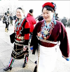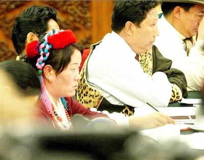 本報(bào)北京3月7日電(記者傅偉)在西藏代表團(tuán)中,36歲的白丹措姆走到哪里,其獨(dú)特艷麗的服裝都會吸引人們好奇的目光。許多人不知道,她是近8000名門巴族中唯一一名全國人大代表。(見圖③)