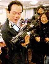 在此前一小時的“全國人大代表話世博”網(wǎng)絡(luò)直播活動中,經(jīng)濟學(xué)博士張兆安代表回答了網(wǎng)友提問;直播結(jié)束后,他拿起DV,采訪、拍攝、客串記者樂在其中。