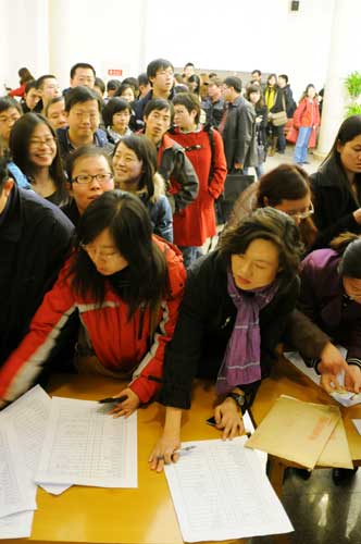 采訪2009年全國兩會的境內(nèi)外記者3月1日起陸續(xù)報到,在位于北京梅地亞中心的兩會新聞中心領(lǐng)取采訪證件。