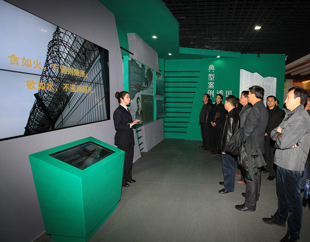 該基地打破傳統(tǒng)展示方式,大量運(yùn)用高科技手段增強(qiáng)基地教育空間和針對(duì)性,集聲、光、電等多種現(xiàn)代科技于一體,從視覺(jué)、聽(tīng)覺(jué)、觸覺(jué)等多層次營(yíng)造了警示氛圍,增強(qiáng)了教育的感染力和震懾力。