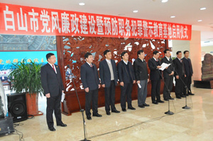 白山市黨風(fēng)廉政建設(shè)暨預(yù)防職務(wù)犯罪警示教育基地由白山市委主辦,白山市人民檢察院承辦;卣嫉1500余平方米,一樓為專項(教育)活動展廳,二樓第一展廳為警示廳,第二展廳為城市發(fā)展和檢察文化廳,第三展廳為教育廳。通過展示黨的反腐歷程,以身邊事教育身邊人,倡導(dǎo)廉政文化。