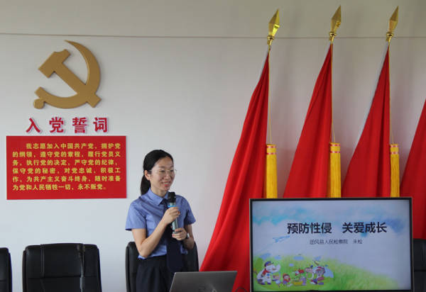 該院檢察官助理陳一方從識別“哪些是隱私部位”“哪些是不安全碰觸”開場,讓同學(xué)們上臺情景模擬,充分調(diào)動(dòng)他們的積極性。隨后,陳一方圍繞“什么是性侵害、常見的誤區(qū)、如何預(yù)防性侵害、被侵害后怎么辦”展開講授。